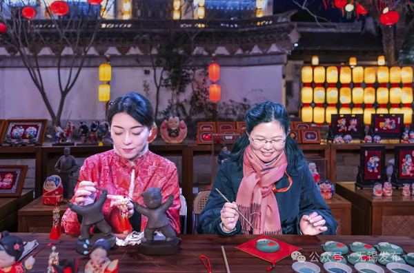 Huishan clay figurines are showcased at the Wuxi venue. [Photo/WeChat account: wuxifabu2013]